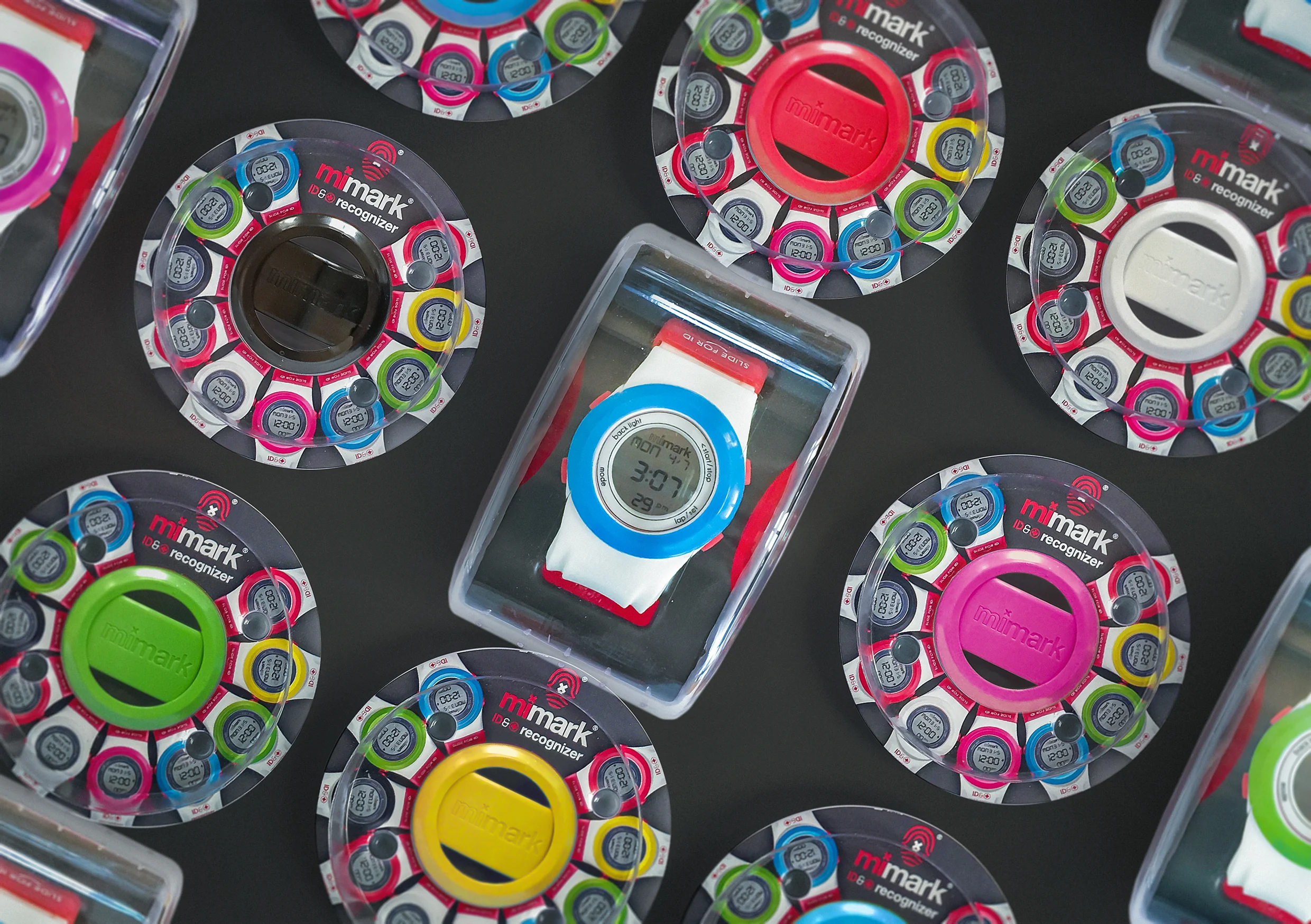 Mimark (representing “M”edical “I”nformation mark) is a watch designed for children to replace medic alert bracelets. The aptly named “recognizer” contains a simple 3 function digital time-piece coupled with a unique QR code concealed on the strap. In the event of a child getting lost or into a medical emergency, the QR code can be easily located and revealed on the wearers wrist (in the same manner as a conventional medic alert bracelet would be). Once scanned with a smart phone the first responder will be sent vital information including emergency contacts and any medical conditions. Procreate designed this product from a philosophy through to a tangible solution and all the avenues of development in between.