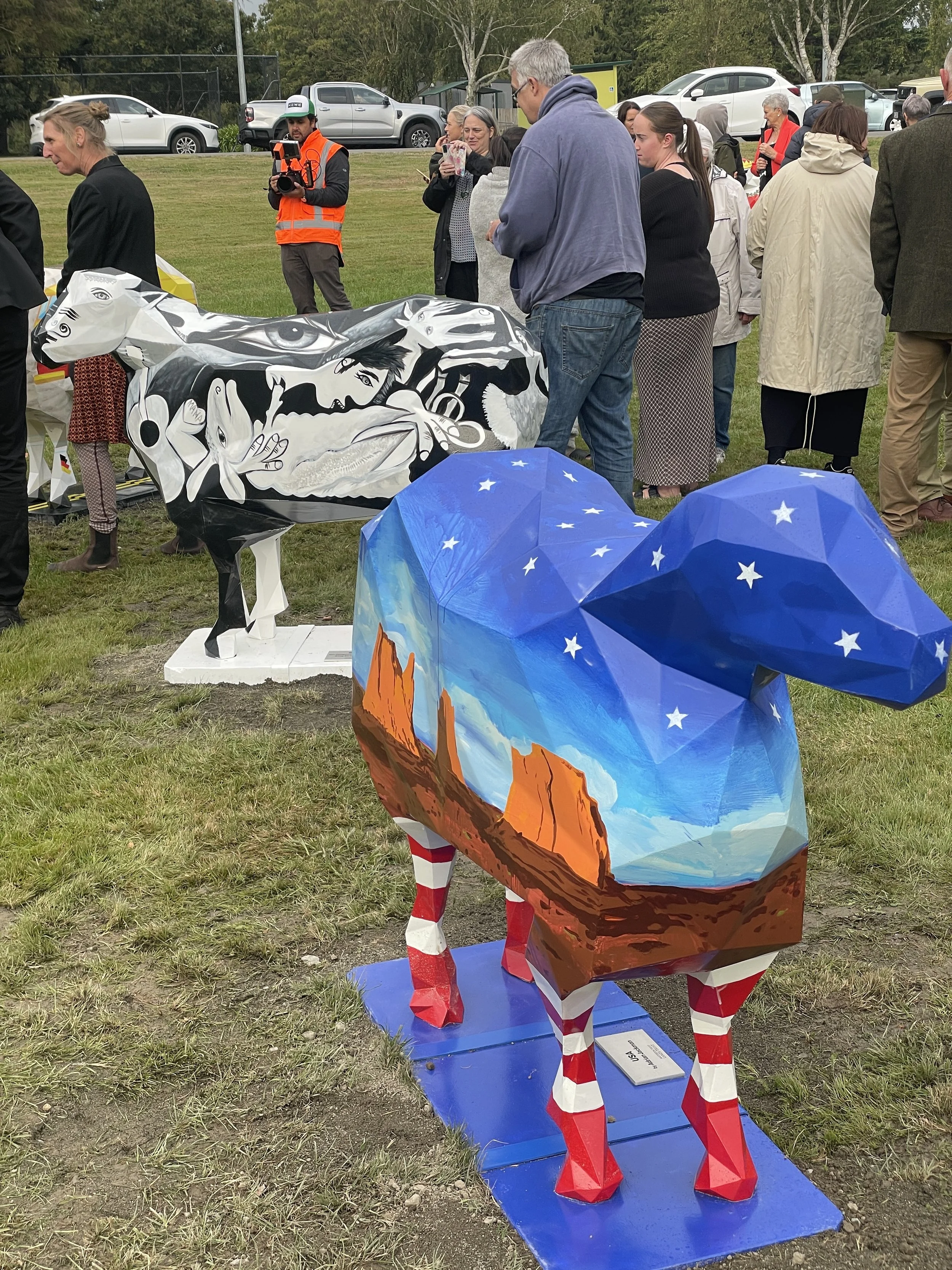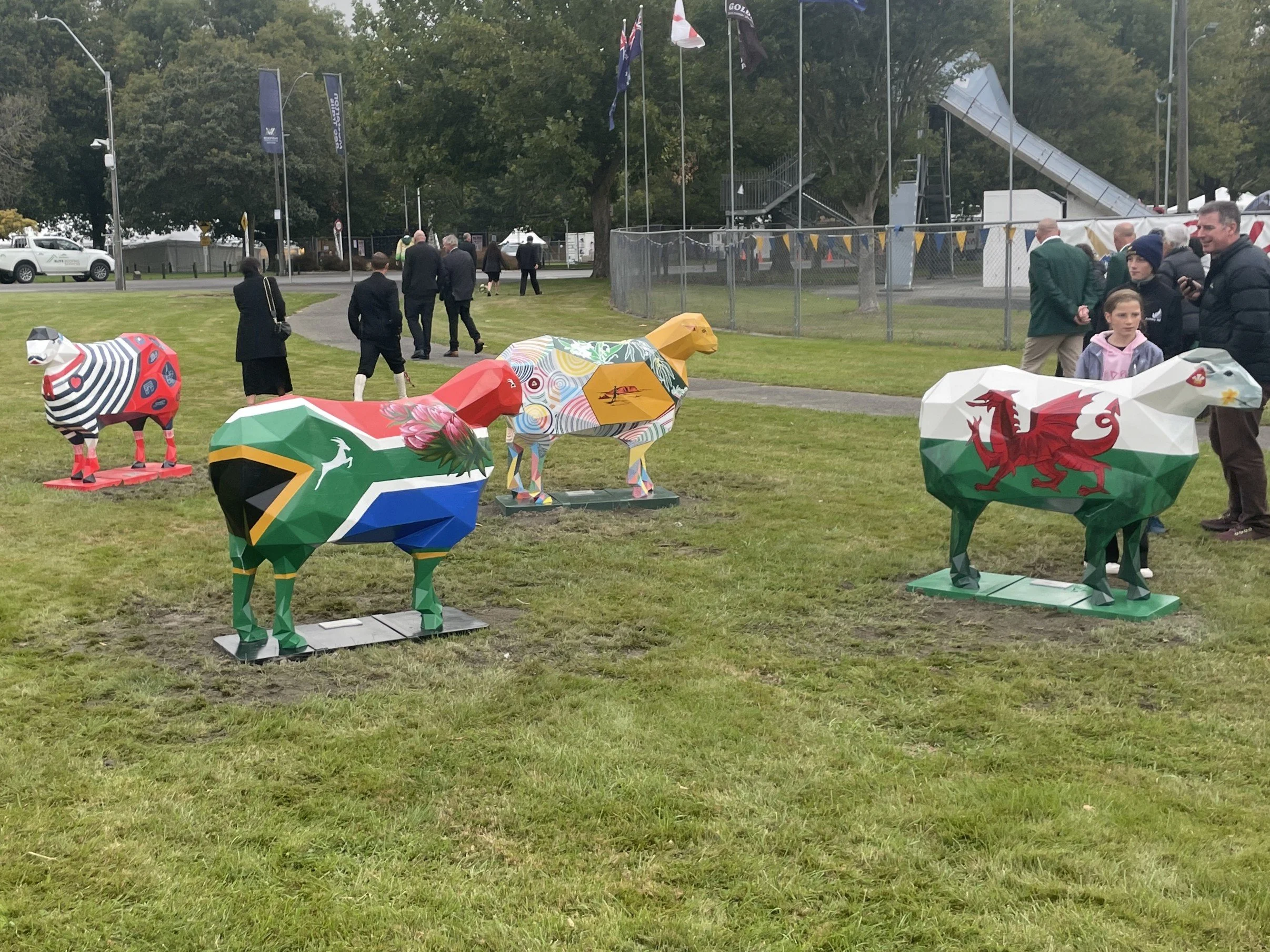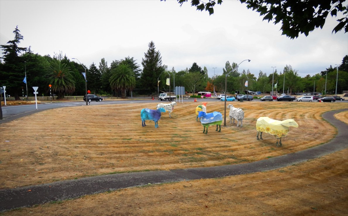 The group of sheep sculptures have been painted by local Masterton artists to celebrate the diverse nations competing at the event.